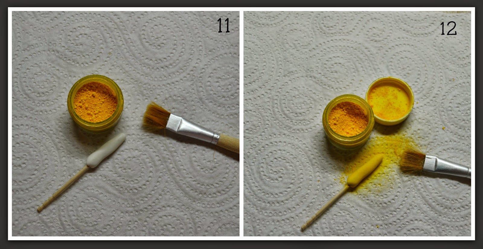 antes de pintar con el colorante en polvo.