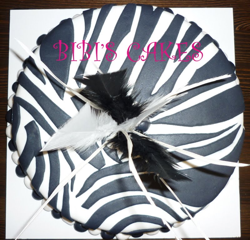 Buen eleccion de olga para su tarta, es muy original celebrar el cumpleaños con una tarta de cebra, por mi parte me encantan las plumas, soy asi que le vamos hacer.