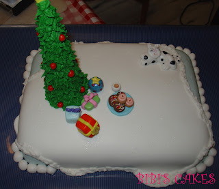 Miren su trabajo y vean el resultado, fue muy fácil trabajar con ella, la tarta con motivos navideños, nos encanto, su gatito, el platito de las galletas que espera a santa y su vasito de leche.