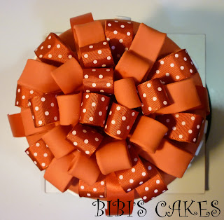 Y por último bizcocho de naranja con virutas de piel de naranja, bañado con almíbar de naranja, relleno de buttercream de naranja y dulce de leche, y como un juego óptico por debajo del fondant lo cubrí con buttercream de vainilla de color verde.